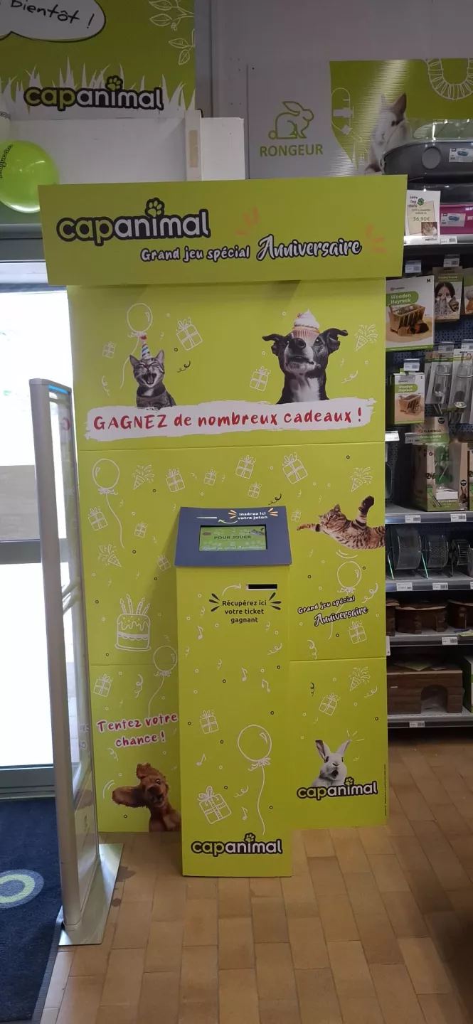 Rendez-vous dans votre magasin Cap Animal pour fêter cet anniversaire et tenter votre chance à la borne du Jeu de la Fortune. Un jeton suffit pour peut-être repartir avec un joli cadeau. Bonne chance à tous !